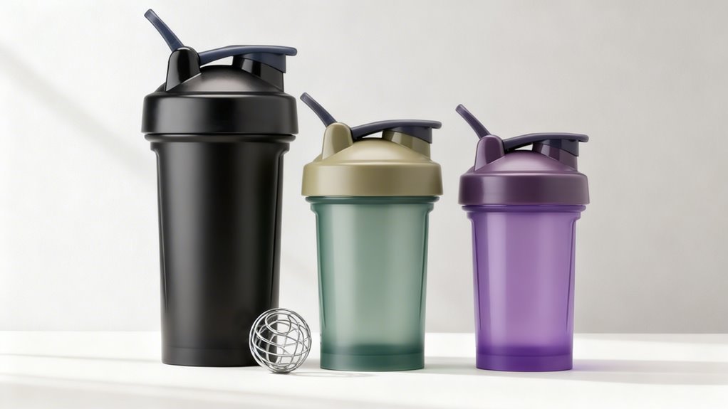 Choosing the right blender bottle involves considering its size and capacity, which usually range from 20 ounces to 28 ounces. If you’re often on the go or prefer quick protein shakes, a 20-ounce bottle might be ideal. However, for larger mixes or meal replacements, you might want to opt for a 28-ounce option. Many bottles feature measurement markings on the side, making it easier to follow nutritional guidelines accurately. If you frequently switch between activities, consider brands that offer multipacks with varying sizes. Remember, smaller bottles are generally easier to carry in your gym bag or travel container, while larger ones will take up more space. Make your choice based on your specific hydration and mixing needs!