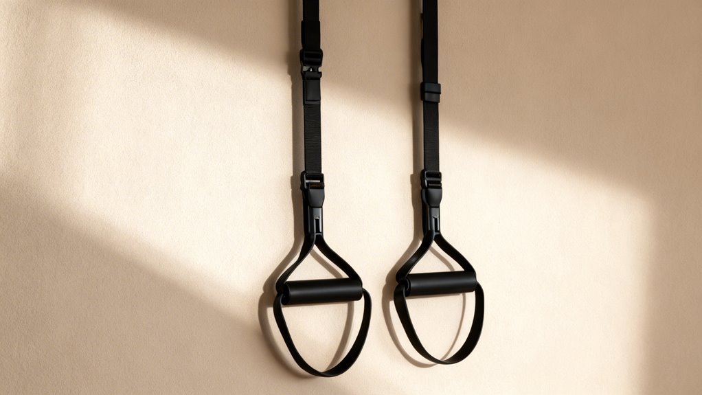Integrating TRX suspension trainers into your fitness routine means considering user weight capacity for effective and safe workouts. When selecting a suspension trainer, check the maximum weight capacity to ascertain it can safely support your body weight during exercises. Many models accommodate a wide range of users, with capacities often exceeding 400 pounds, making them suitable for various body types. Remember, user weight capacity impacts not just safety, but performance too; exceeding the limit can lead to equipment failure or less effective workouts. Some trainers offer reinforced straps and heavy-duty construction for higher weight limits, enhancing durability during intense exercises. Choosing a suspension trainer with the right weight capacity is essential for effective training without risking injury or equipment damage.